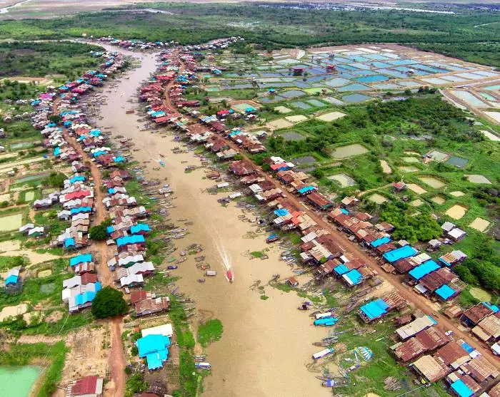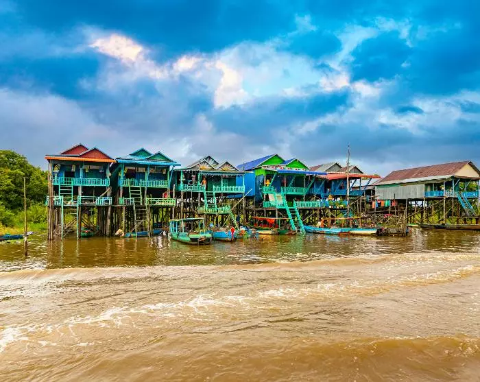 Reisen fortsetter til Tonle Sap-innsjøen, hvor du vil bli seilt til en av de mange fiskelandsbyene langs innsjøen, enten Kompong Khleang (mellom august og begynnelsen av februar) eller Chong Khneas (mellom midten av februar og juli). Her lærer du mer om hvordan livet leves av de mange familiene som hovedsakelig lever av fiske. Familiene bor langs innsjøen i fargerike hus som står på lange stylter, slik at de kan takle de store nedbørsmengdene i regntiden, når landsbyens smale gater forvandles til små kanaler. I den tørre årstiden, når det ikke er like mye vann, ser du de lange styltene tydelig.