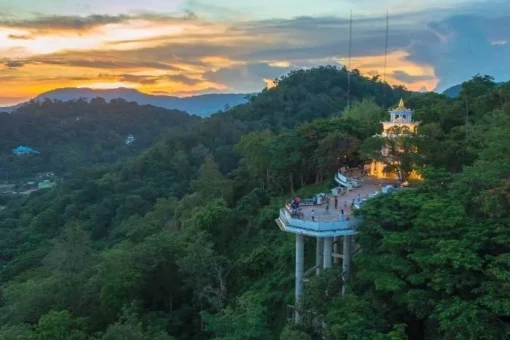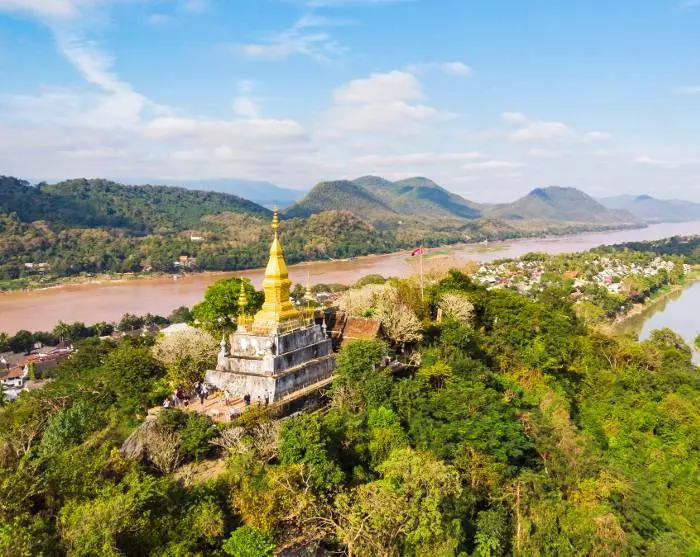 Reisen fortsetter til Phousi-fjellet, som ligger bare 1 km unna. Her venter 328 trinn opp til det høyeste punktet på Phousi-fjellet. På vei opp passerer du små templer og Buddha-statuer, der du kan stoppe hvis du får behov for å trekke pusten. Innsatsen din blir belønnet når du står på toppen. Her kan du nyte pittoresk panoramautsikt over vakre Luang Prabang med sine elver, templer og frodige landskap med fjell i bakgrunnen.