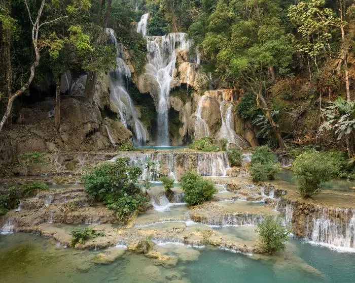 Etter en deilig lunsj venter en kjøretur på 30 km sør for Luang Prabang til Kuang-Si-fossen på deg. Her kan det kanskje friste med et forfriskende bad? Omgitt av frodig, tropisk jungel flyter Kuang Si-fossen i kaskader over tre nivåer ned en bratt åsside. Det største fallet er 60 meter, og på det laveste nivået kan du avjøle deg i det turkise vannet i de rolige bassengene.