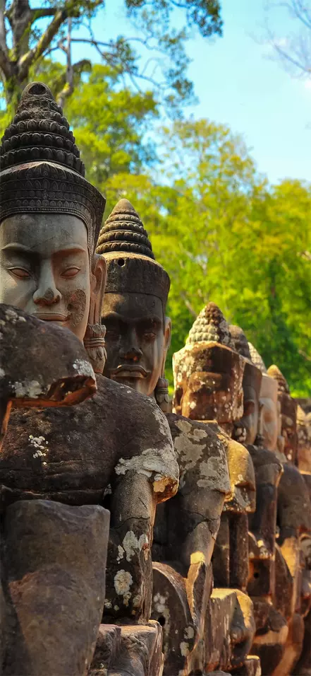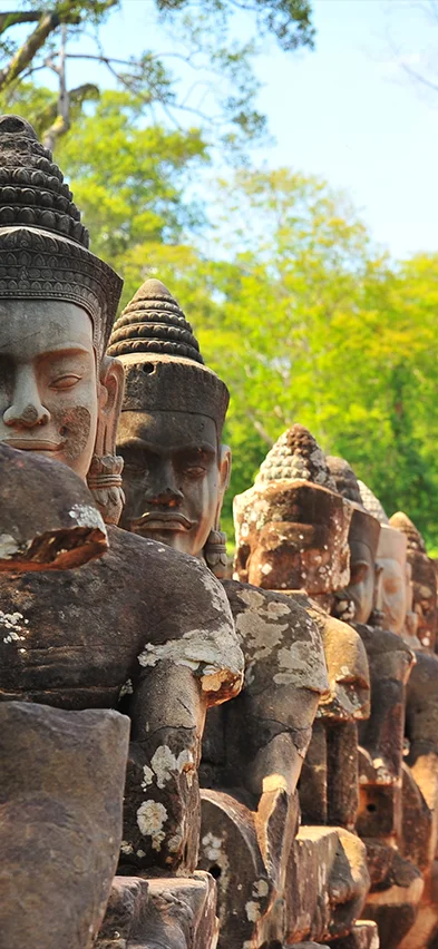 Turen går videre til et av hovedtemplene, Bayon, der det venter et imponerende syn med utrolig mange smilende Buddha-ansikter.
