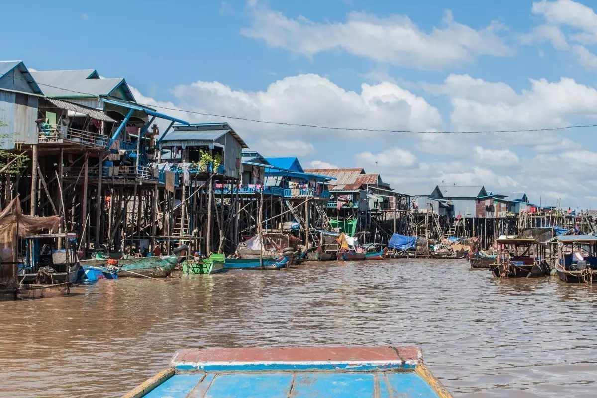 Her går du ombord i en båt som tar deg med ut til et av de mange fiskerleierne, Kompong Phluk. Her får du høre hvordan hverdagen er for de mange familiene her som primært livnærer seg av fiske. Familiene bor i karakteristiske, fargerike hus som står på høye stolper, slik at de takler den høye vannstanden i regntiden, når landsbyens små gater forvandles til små kanaler. I den tørre perioden, når vannstanden er lav, er det fritt utsyn til de høye stolpene.