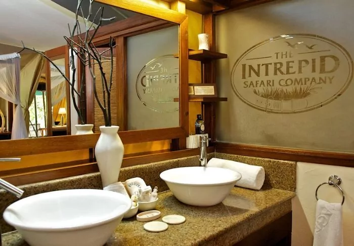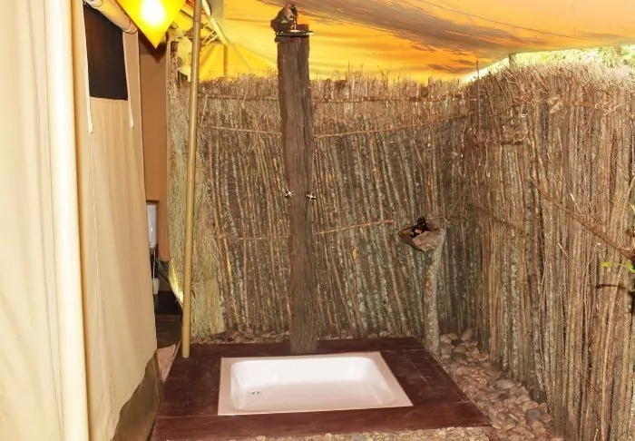Alle de romslige teltene har eget bad, dusj med kaldt og varmt vann og toalett. Gulvet i teltene er fast – laget av parkett – mens veggene altså er av lerret, slik at du både kan høre og lukte naturen utenfor. Det er en ekte “bush-opplevelse”, uten at du trenger å gi avkall på komforten.