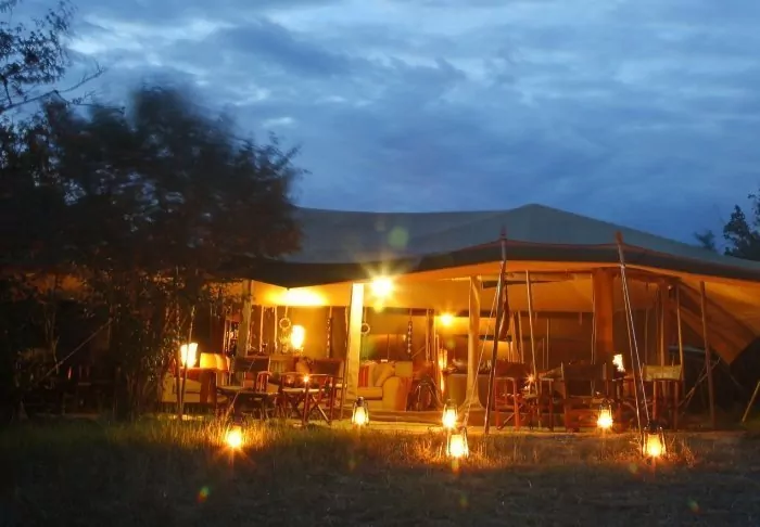 I fellesområdene finner du både spisetelt og et hyggelig innredet loungetelt, med myke lenestoler og tepper og puter i masaienes flotte farger. Det er to utendørs bålområder, og her kan du beundre solnedgangen med en kjølig drink i hånden.