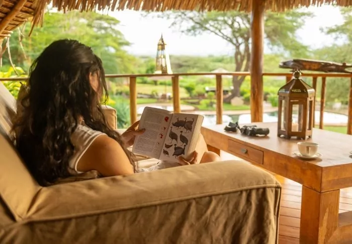 Etter opplevelsesrike safaridager kan du koble av ved svømmebassenget og i den grønne hagen eller kjøpe deg en avslappende massasje. Hvis du ennå ikke har fått nok at Afrikas storslåtte natur, kan du nyte den nesten uforstyrret fra din egen veranda eller fra lodgens solterrasse, som også fungerer som utsiktspunkt over hele området.
