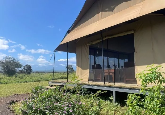 Her er det 29 romslige og fint innredede telt. Her er det ikke masse dikkedarer, men det er likevel tenkt på alt. Alle telt har egen veranda, noen av dem har til og med en liten plunge pool, og det er utsikt til Kilimanjaro fra alle teltene.