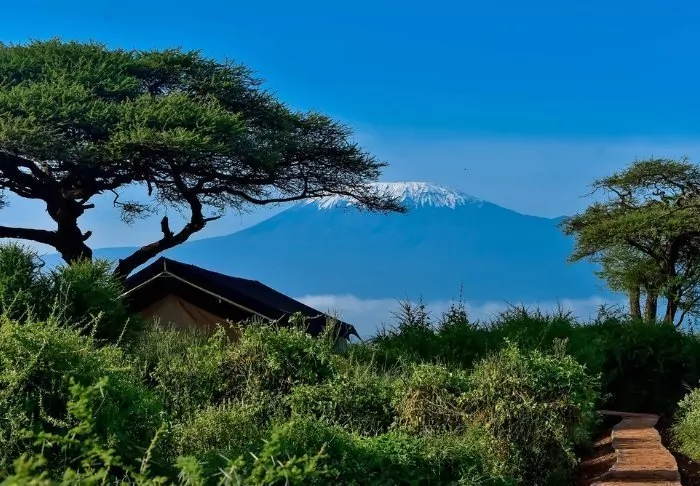 På en egen vei, like ved inngangen til Amboseli nasjonalpark finner du Amboseli Sentrim Lodge, der det er en helt ekstraordinær utsikt til Afrikas høyeste fjell, Mt. Kilimanjaro.