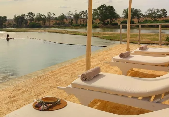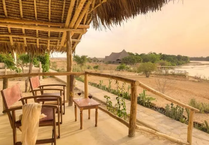 De 18 teltene har alle utsikt mot Galana-elven, som er Kenyas nest største elv. Alle teltene har egen terrasse slik at du får den best mulige utsikten til elven. Ja, selv fra bassenget er det utsikt til elven.