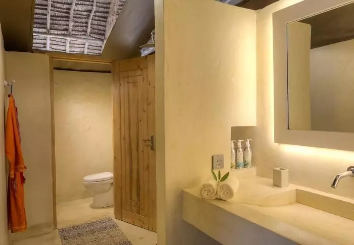 Du har eget bad, skrivebord, lenestol, minibar, mulighet til å lage en kopp te, WiFi og myggnett over sengene.