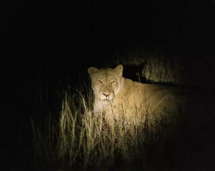 Om kvelden venter enda en unik opplevelse du kun kan få utenfor selve nasjonalparken: en game drive i mørket. Mange av dyrene på den afrikanske savannen er mest aktive om natten. Da skinner ikke den varme solen på himmelen, og gresseterne kommer frem for å spise i ly av mørket. Det vet selvfølgelig de opportunistiske kattedyrene godt, så i motsetning til om dagen, da disse dyrene for det meste ligger i skyggen og puster, kan du om kvelden være så heldig å få øye på både løver og hyener på din vandring gjennom bushen.