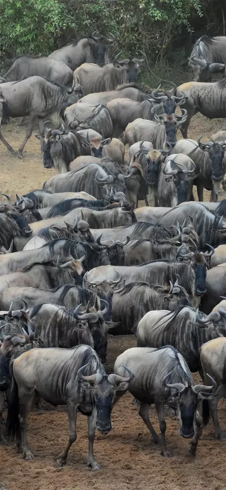 De neste dagene vil du se store mengder dyr fra ditt sete i den beskyttende landcruiseren. Fra juli til oktober kan man her oppleve den 1.200 km lange vandringen av over en million gnuer, et par hundre tusen sebraer pluss massevis av thompsongaseller på den kenyanske siden av The Great Migration. Det er på denne vandringen av mange dyr blir ofre for de enorme nilkrokodillene når de må krysse Mara-elven.