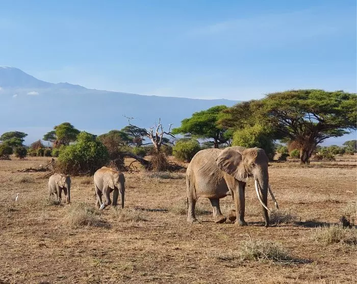 Dagen tilbringes med safari i Amboseli. Pga. det tørre klimaet og de åpne slettene har du her flotte muligheter til å se ville dyr, og utsikten er helt fantastisk. Kanskje du til og med får knipset din egen versjon av det verdensberømte motivet med elefanter som vandrer over savannen med fjellet Kilimanjaro og de ikoniske akasietrærne i bakgrunnen – det ultimative Afrika-motivet!