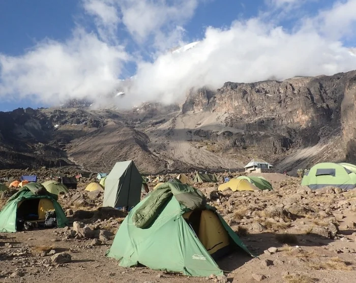 All overnatting skjer i telt, med unntak av Marangu-ruten, der det overnattes på enkle fjellhytter med flere senger på hvert rom.