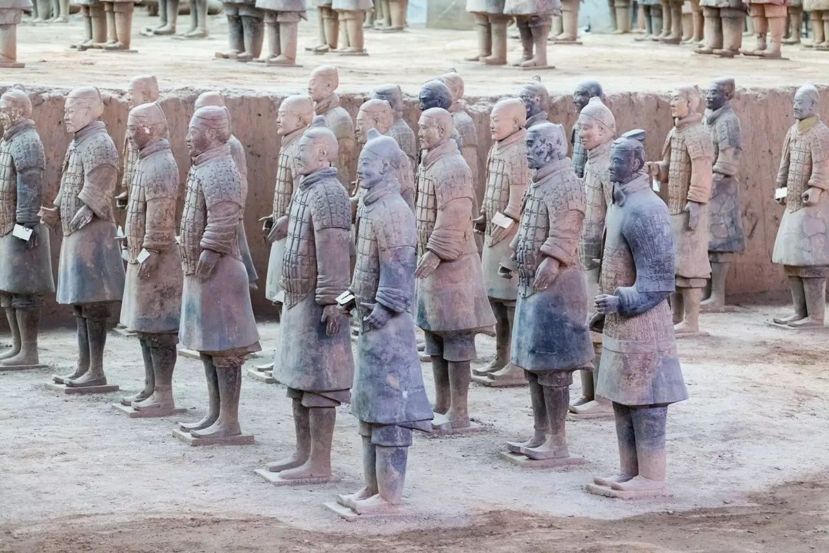 Terrakottahæren består av tusenvis av soldater i naturlig størrelse som er oppstilt i kampposisjon og hundrevis av kampvogner og hester. Man mener at Kinas første keiser lot denne hæren oppføre for å beskytte graven sin. Noe helt spesielt ved disse leirfigurene er at hver eneste figur er unik, og deres klær og redskaper gir en fantastisk innsikt i livet for mer enn 2000 år siden.