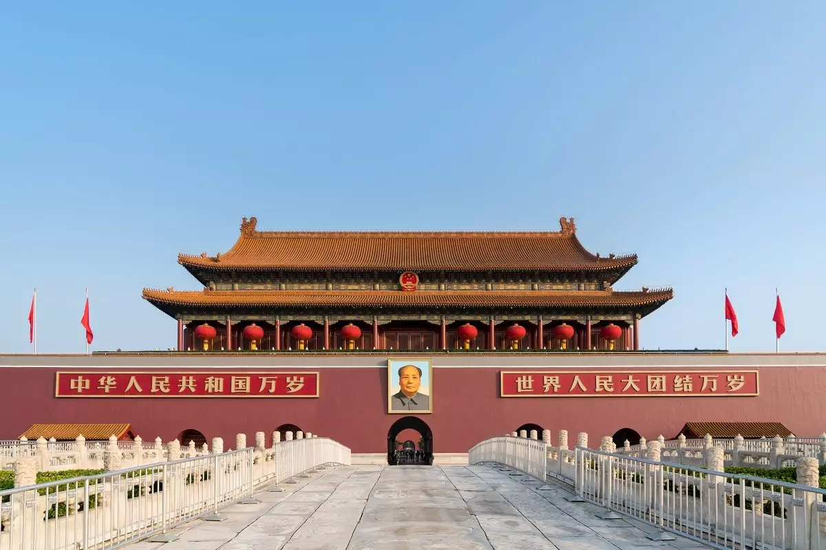 Overfor Den himmelske freds plass ligger det keiserlige palasset, også kalt Den forbudte by.