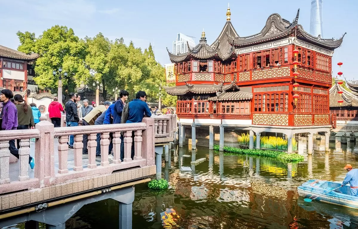 Fra Shanghai Old Street fortsetter turen til Jiuqu-broen, også kjent som Nisvingsbroen, som snor seg over en liten sjø med karper. Her står Shanghais eldste tehus, Huxinting, fra 1855. Jiuqu-broen fører deg videre til inngangen til Yuyuanhagen, som er Shanghais fineste hage.