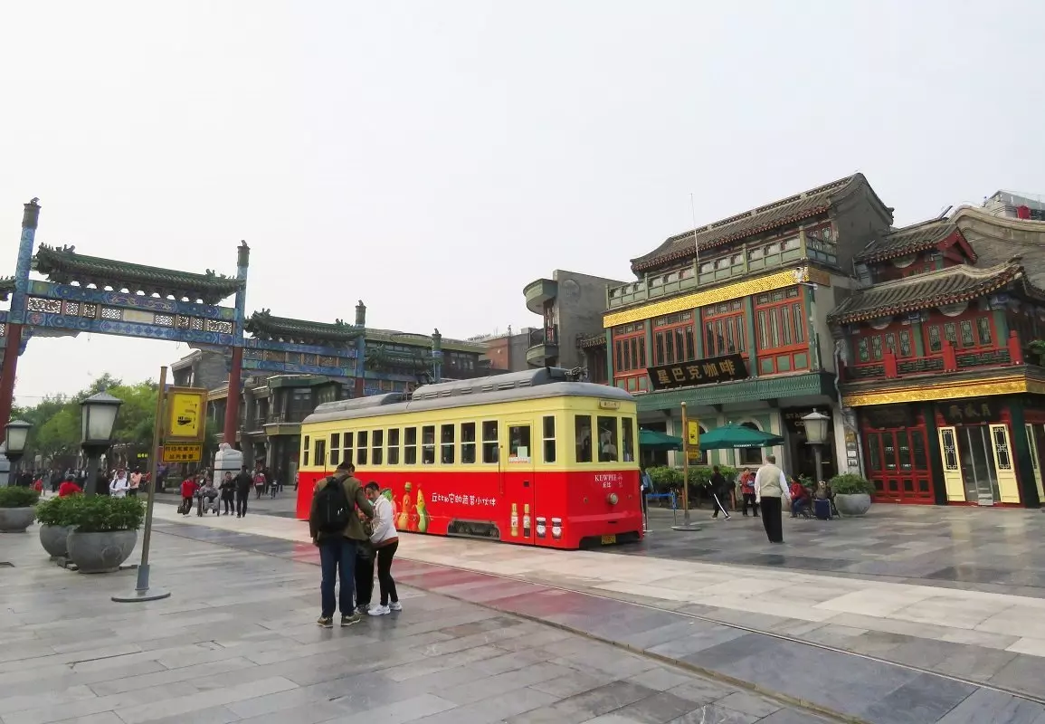 Fra hotellet går du til den 840 meter lange handlegaten Dashilan. Dashilan ble grunnlagt under Ming-dynastiet for over 600 år siden, og er dermed en av de eldste handlegatene i byen. Ett av gatens kjennetegn er den gamle trikken fra fordums tid, som står i den nordlige enden av gaten.