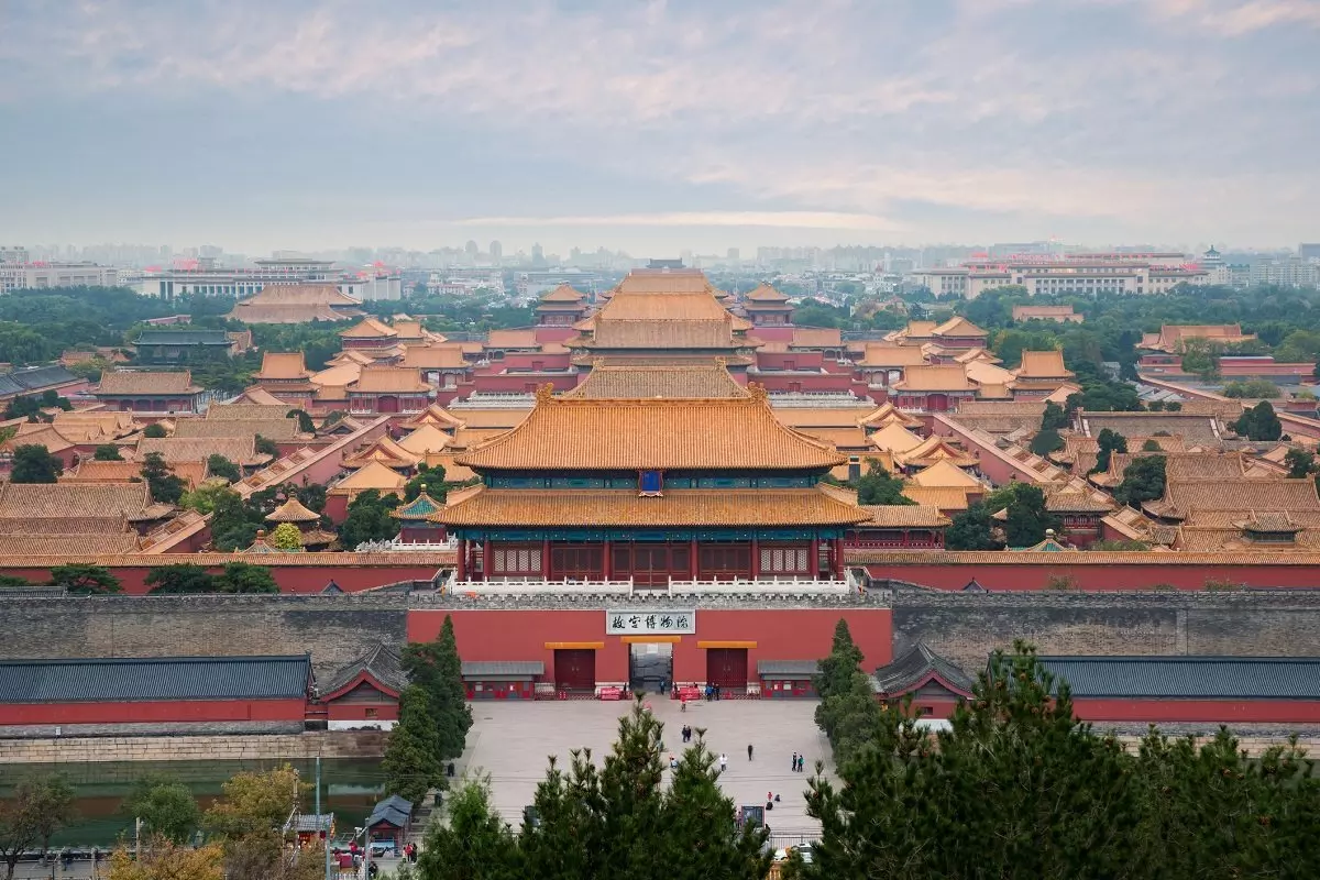 Bak de tykke, røde murene åpenbarer Den forbudte by seg med det store, praktfulle keiserpalasset. Palasset ble bygget på 1400-tallet av keiser Zhu Di, etter at han flyttet hovedstaden fra Nanjing til Beijing.