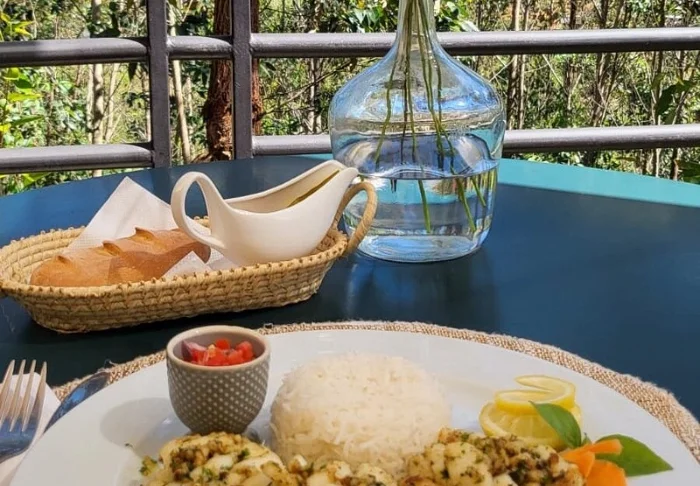 Restauranten, som også er omkranset av regnskogen, byr på en god blanding av lokale og franskinspirerte retter. Før middag kan du nyte en god drink i den hyggelige loungen, der du også finner spill. Avslutt gjerne kvelden med en god kopp espresso og crème brûlée – naturligvis med vanilje fra Madagaskar.