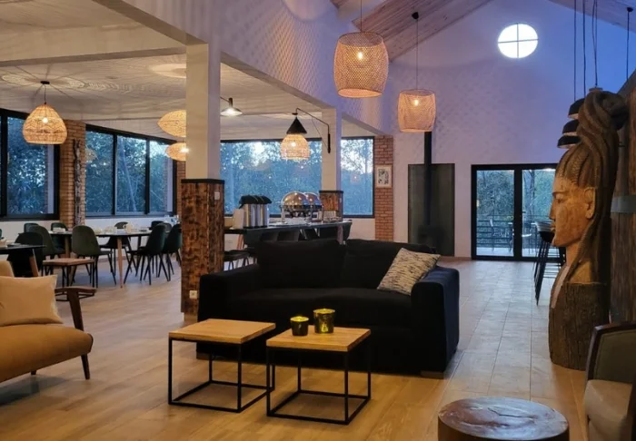 Lodgen ligger i rolige omgivelser rett ved en liten elv, omkranset av tett vegetasjon. Her våkner du til fuglesang. Dette er kanskje ikke luksus i tradisjonell forstand, men stedet byr på sjarm, atmosfære og ekte gjestfrihet.