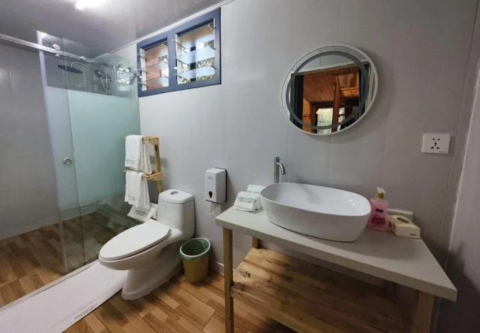 Rommene er av en fornuftig størrelse, tilbyr muligheten til å lage te eller kaffe, og har aircondition og vifte. Det er verdt å merke seg at strømmen slås av noen timer midt på natten, så husk å lade dine elektriske apparater om kvelden.