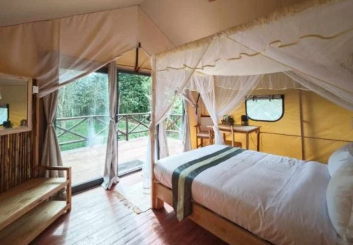 Rommene er delvis bungalower og delvis luksustelt, alle enkelt men komfortabelt innredet med fine tredetaljer, myggnetting og en liten terrasse der du kan nyte en kopp kaffe mens du lytter til jungelens lyder. Det er varmt vann i dusjen, strøm det meste av døgnet og mulighet for Wi-Fi i fellesområdene.