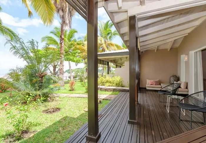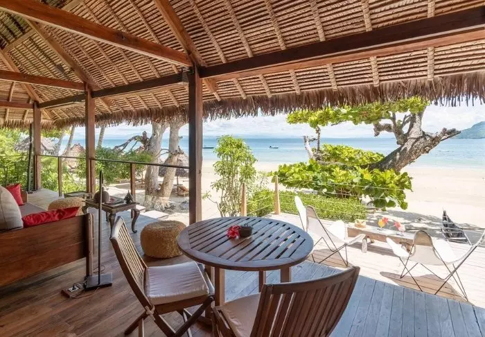 Alle bungalower har egen veranda med utsikt og direkte tilgang til stranden. Det er møbler for avslapning på verandaen, og alle bungalower har også to solsenger på stranden. Innredningen er i klassisk malagassisk stil med mye treverk og store dører som kan åpnes, slik at vinden kan sirkulere og ventilere.