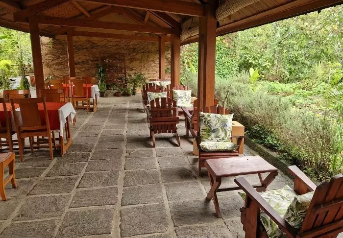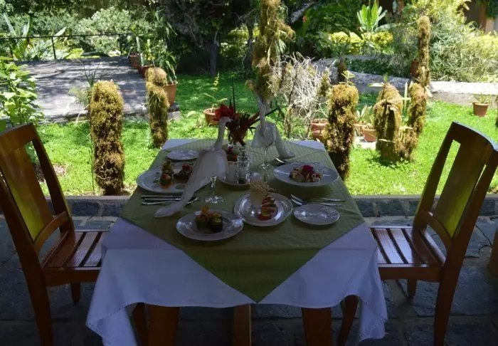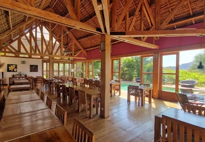 Restauranten ligger i hovedbygningen og serverer hjemmelaget mat med mange lokale råvarer – gjerne malagassisk inspirert, men med et europeisk innslag. Du kan velge å spise ute på den overbygde verandaen med utsikt mot hagen og grønne omgivelser.