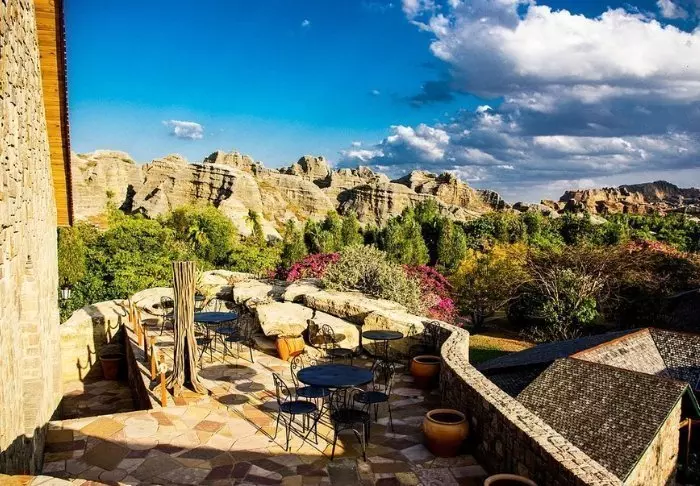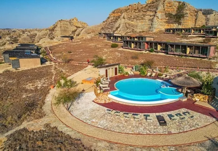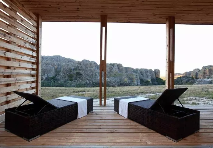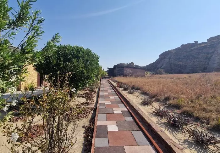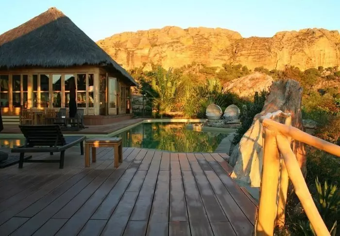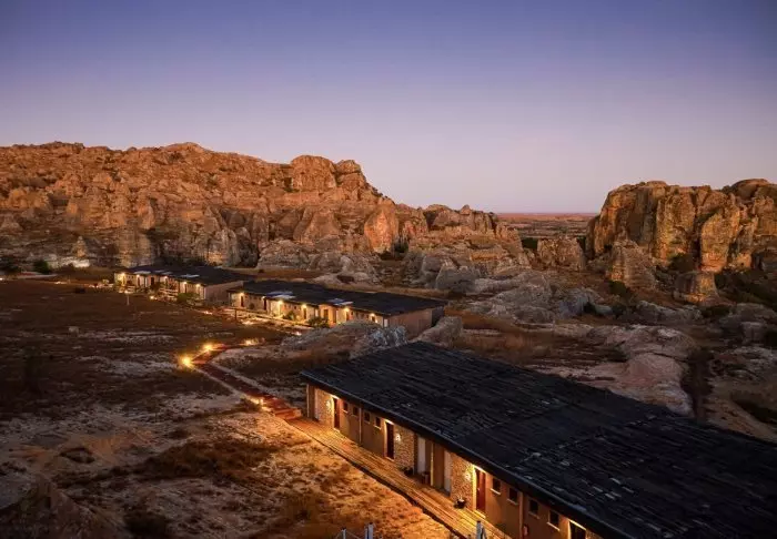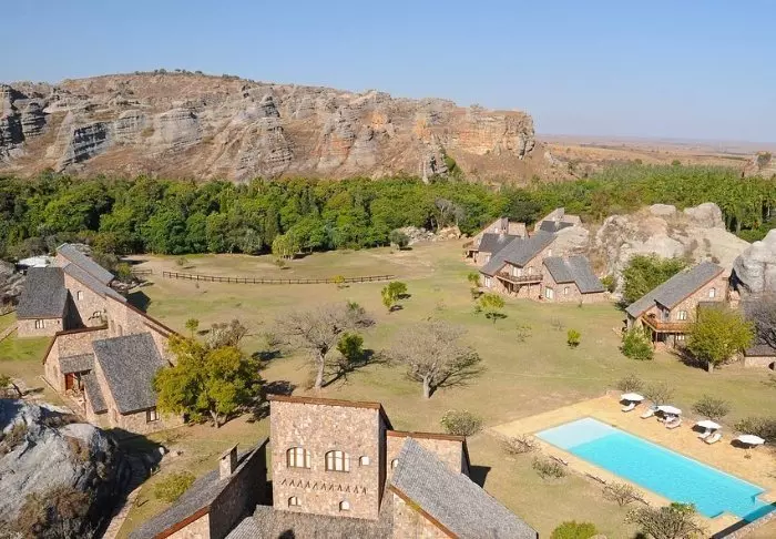 I likhet med søsterhotellet Jardin du Roy er Relais de la Reine bygget av granitt, som smelter inn i det omkringliggende landskapet i Isalo.