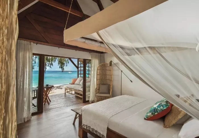Her er det kun 8 bungalower, så hvis du drømmer om en oppgradering til Tsara Komba, bør du være tidlig ute! Alle bungalowene er bygget av naturlige materialer for å passer inn blant regnskogens palmer, bougainvillea og jasmin, og alle har fantastisk utsikt over havet fra verandaen. Det er verdt å merke seg at det ikke er aircondition her (men en vifte), men på ekte madagassisk vis kan dører og vinduer åpnes for å skape luftsirkulasjon som avkjøler rommene.