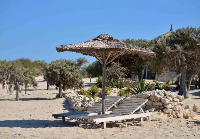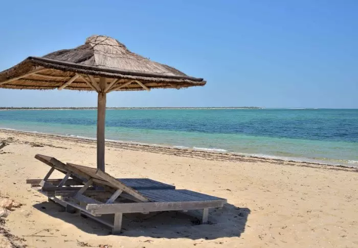 På begge sider ligger den hvite stranden øde. Bak deg ligger lodgen. Det er den eneste lodgen på mange kilometer. Her er det ingen folksomme gater, suvenirbutikker med røverkjøp eller musikk fra de omkringliggende restaurantene. Alt du hører, er lyden av havet og vinden – og lyden av alle som jobber på kjøkkenet med å tilberede lunsjen.