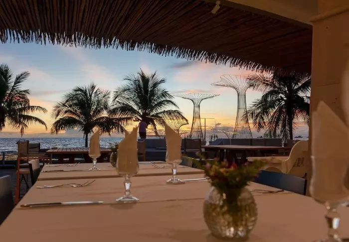 Tenk deg at du sitter i baren – med tærne i sanden – og nipper til en god drink før middagen, som naturligvis er tilberedt av de beste råvarene. Deretter går du gjennom den stille natten til din egen bungalow (som naturligvis har aircondition, minibar, Wi-Fi og TV – hvis ikke bølgene er underholdning nok)?