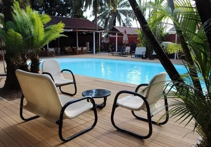Fra bassengområdet er det en flott utsikt til solnedgangen over elven, og restauranten er hyggelig og innbydende. Det er også her du finner hotellets Wi-Fi.