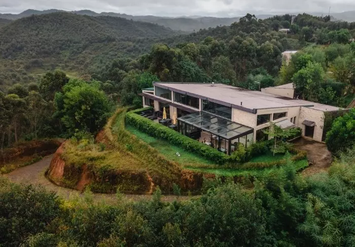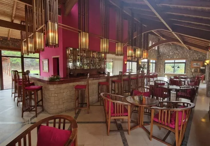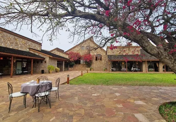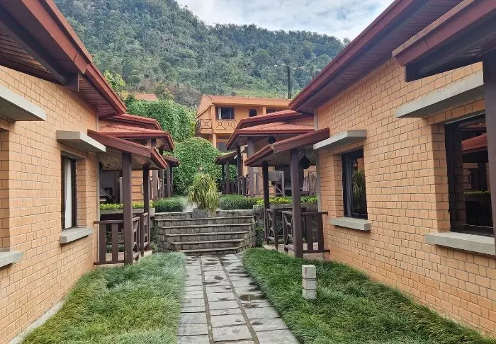 Hotellet ligger på en bakketopp, og det er flott utsikt over nasjonalparken fra loungen og restauranten. Rommene ligger bak selve hovedbygningen, og du kommer deg dit ved å gå langs stiene gjennom den frodige hagen.