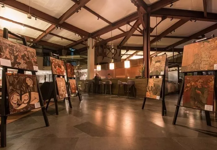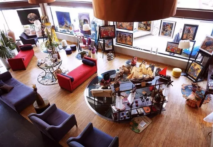 På mesaninen er det ofte «workshops» der lokale kunstnere jobber og viser frem kunsten sin – en god mulighet til å kjøpe en unik suvenir.