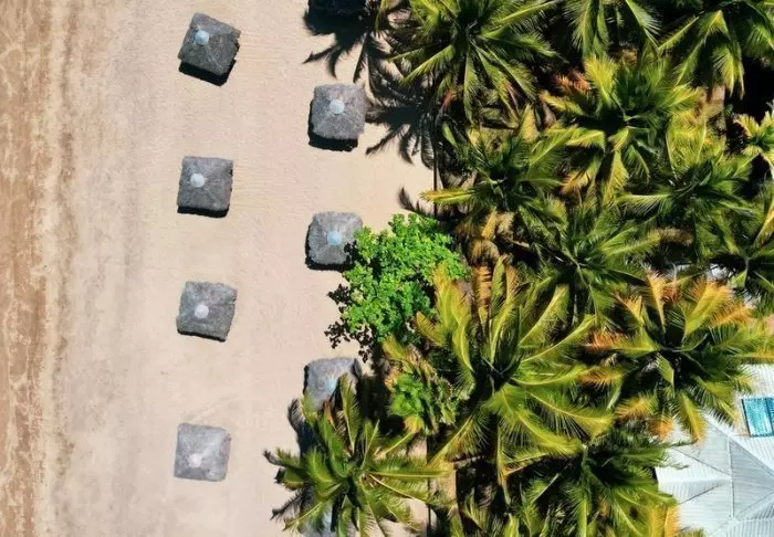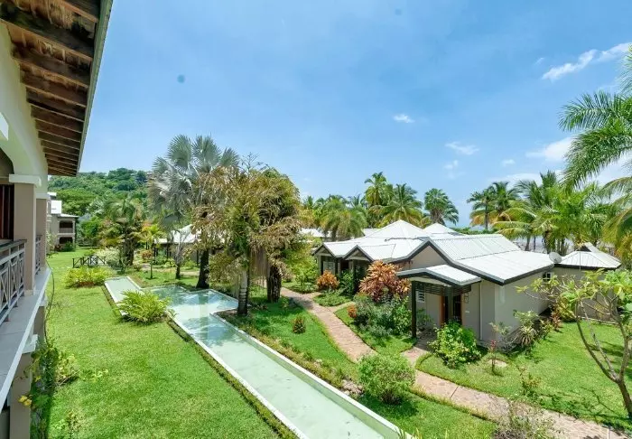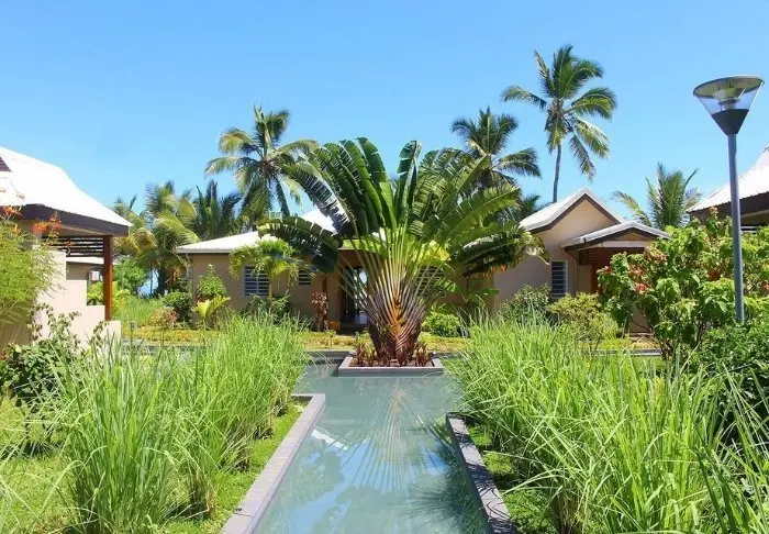Resortet består av koselige bungalower i mørkt tre, spredt utover stranden og omgitt av et vakkert utvalg blomstrende busker og slyngplanter. Alle bungalowene har egen terrasse med utsikt til havet eller hagen, slik at du kan nyte solnedgangen med en drink i hånden og tærne (nesten) i sanden.