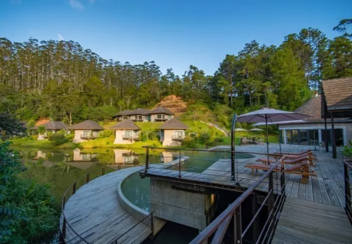 Manjarano Lodge & Spa har ti nydelige bungalower midt i et privat reservat bare et steinkast fra Andasibe-Mantadia nasjonalpark.