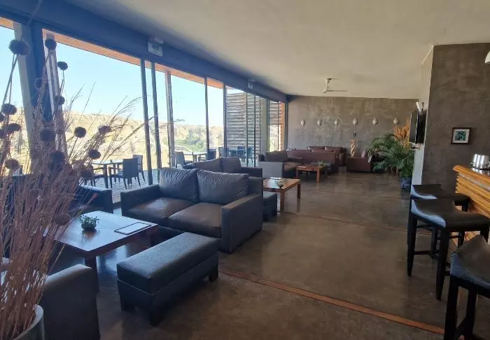 Fra bassenget kan du se havet og Madagaskars eget taffelberg – et fjell med en topp som er flat som en pannekake. Over lobbyen finner du et loungeområde som inviterer deg til å slappe av på sofaen, lese en god bok og ta inn den vakre utsikten.
