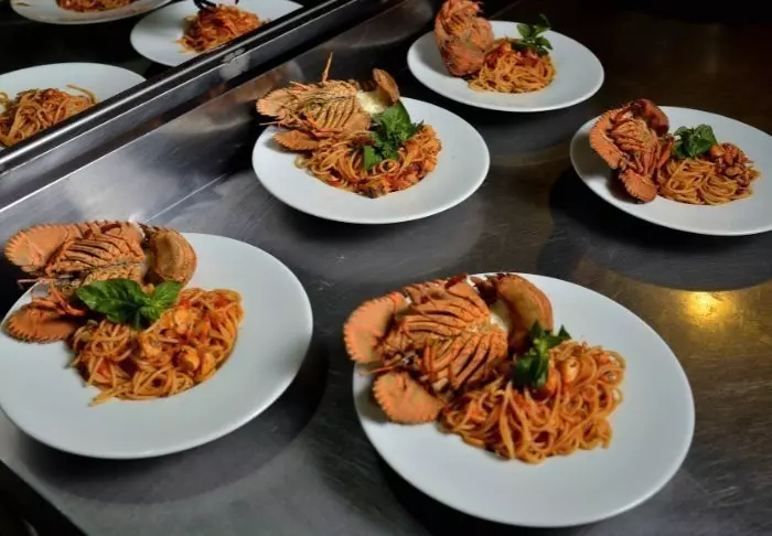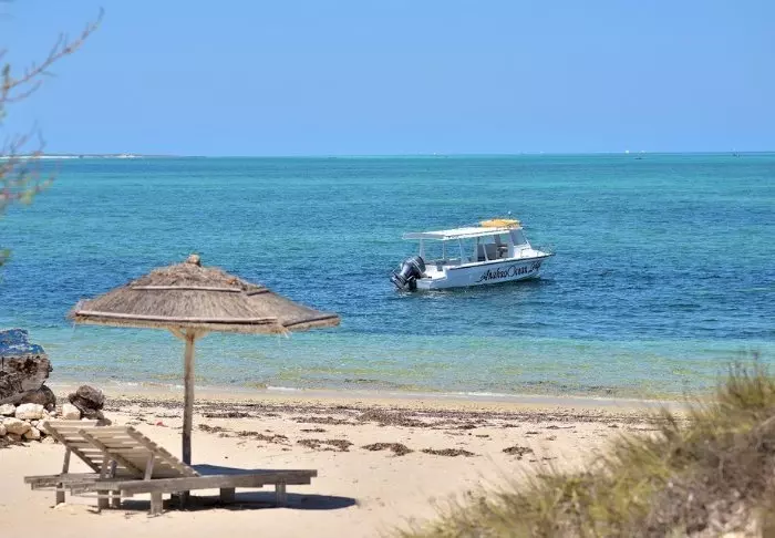 Vannet er varmt og turkisblått. Et par lokale fiskebåter dupper rundt i bølgene – de har nettopp kommet tilbake med dagens fangst med hummer, reker og flyndrer.
