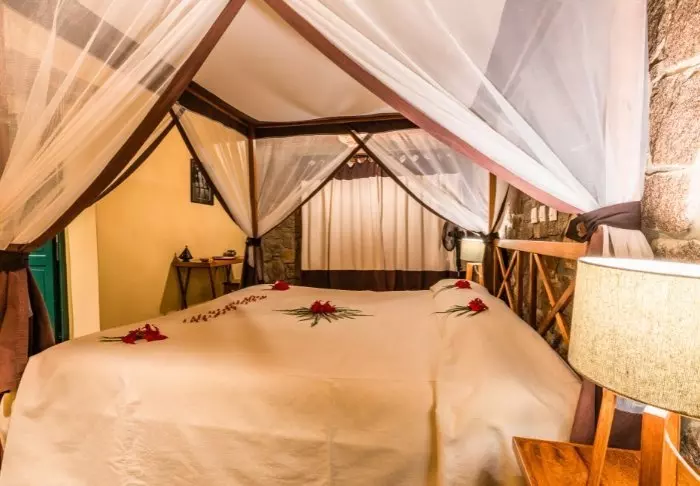 Her er det ni enkeltbungalower, som alle er bygget i stein og har stråtak. Bungalowene er koselig innredet og dekorert i naturlige farger. Det er myggnett over sengene, en sikkerhetsboks og en vifte. Det er ingen aircondition, men på grunn av trekonstruksjonen og stråtaket er det nesten alltid behagelig temperatur i bungalowene.