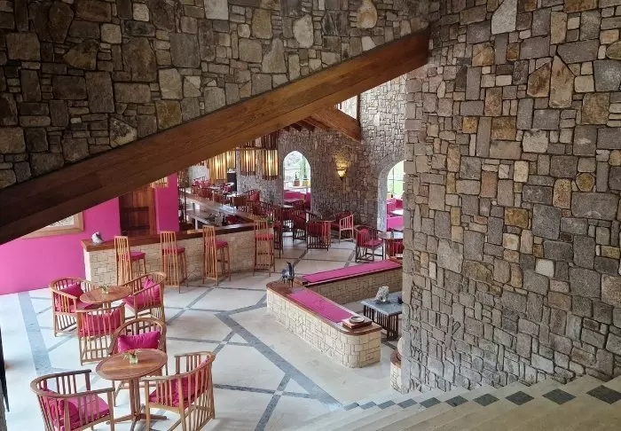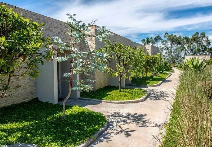 Hotellet har 40 rom, og er bygget av granitt for å passe inn i omgivelsene. Rommene er bygget rundt den store plenen i midten, som har sandsteiner i den ene enden. Her er det rikelig med lys og frisk luft, som gir deg en følelse av nærhet til naturen.