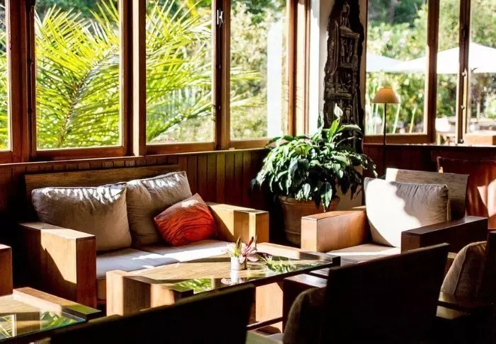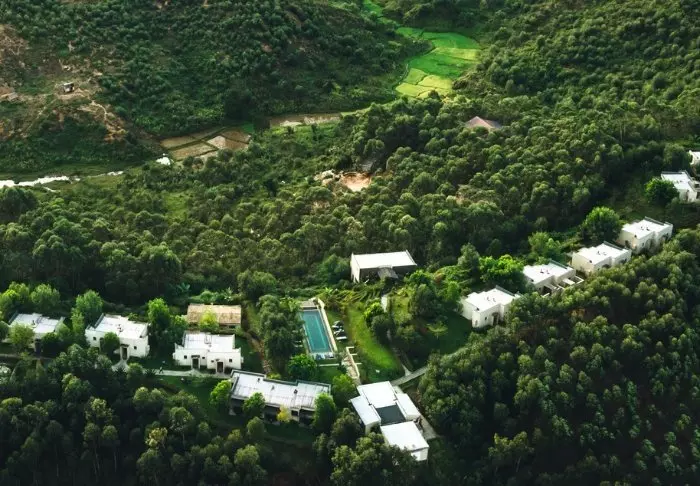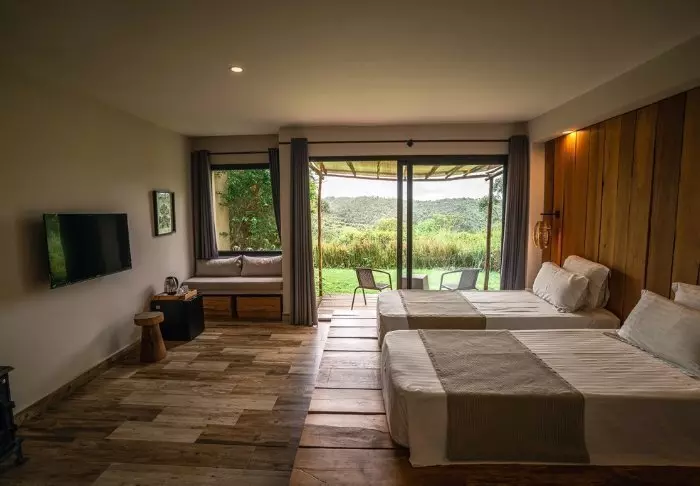 De 23 rommene er store og innredet med respekt for naturen rundt. Det er tregulv og dempede farger, og fra dusjen har du utsikt over skogen rundt deg. Badene er også fylt opp med miljøvennlig såpe og sjampo, og alt overskuddsvann samles og filtreres før det gjenbrukes for å vanne blomsterhagen utenfor.