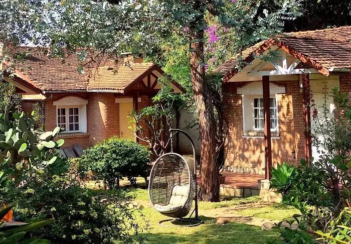 De 18 rommene er sentrert rundt en sjarmerende hage med benker og hagestoler. Her og der hopper en kanin rundt blant de fargerike blomstene.