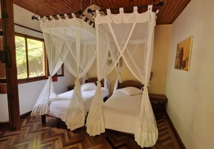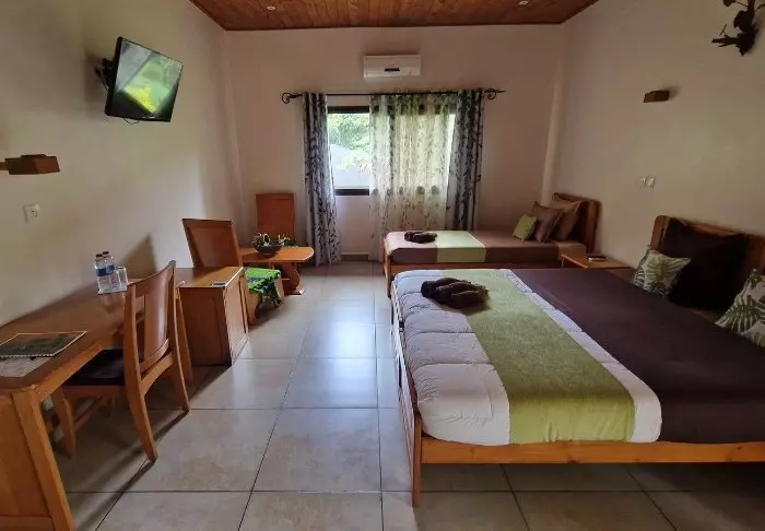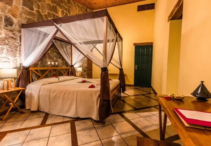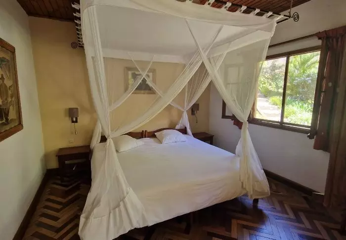 De 22 rommene er alle innredet i tradisjonell madagassisk stil – det vil si veldig enkelt, med tregulv og tremøbler – og ikke så mye annet. Hotellet er rent og pent, men du bør ikke forvente mye mer enn en seng å sove i, god mat og forhåpentligvis god underholdning.