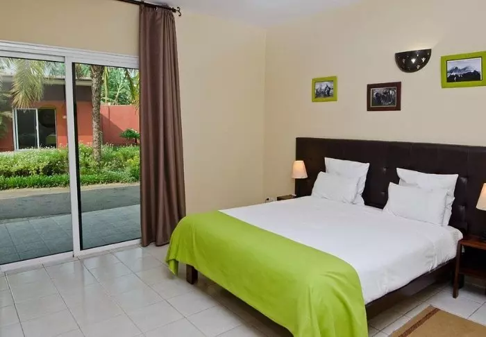 Rommene er store og med et design som nesten leder tankene mot nordisk stil: møbler i lyst tre, lyse betonggulv, store sisaltepper på gulvene og puter og gardiner i skjøre, men fargerike stoffer. Det er ikke kjøleskap på rommet, og heller ikke noe TV. Til gjengjeld finnes det utmerket Wi-Fi overalt. Nattetemperaturen i Antananarivo er heldigvis som regel til å holde ut, men skulle det bli varmt, er det en takvifte.