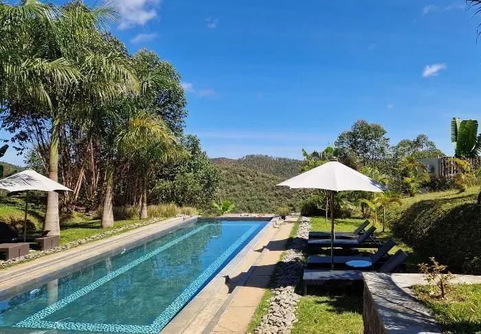 Bare et steinkast fra den internasjonale flyplassen i Madagaskars hovedstad, Antananarivo, ligger det firestjerners boutiquehotellet Nosy Manga.