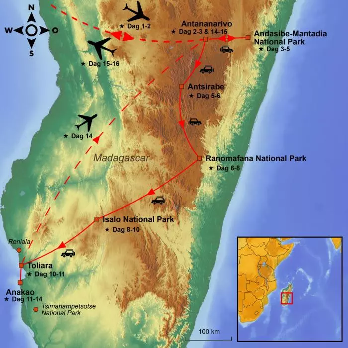 Gled deg til å oppleve Madagaskars høydepunkter, med lemurer i Andasibe og Ranomafana, historiens sus i Antananarivo, naturen i Isalo og selvfølgelig de uberørte, hvite sandstrendene.