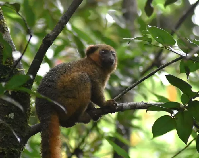 Om morgenen skal du på en guidet fottur i parken. Som i Andasibe vil det her være både en “spotter” og en guide, der spotteren løper inn på forhånd for å lete etter lemurene. Den gylne bambuslemuren er hovedattraksjonen her. De er sjeldne, og er en av verdens mest truede lemurarter. Arten ble først oppdaget i 1986, noe som er ganske utrolig når du tenker på at de er litt over en halv meter høye! Oppdagelsen var den direkte årsaken til at Ranomafana ble en nasjonalpark – det var ganske enkelt klart at noe måtte gjøres hvis den gylne bambuslemuren skulle reddes. Du må være en ganske erfaren turgåer for å legge ut på morgenens tur. Det er ikke anstrengende som sådan, men stiene kan være ganske gjørmete, og du må noen ganger kjempe deg gjennom den tette bunnvegetasjonen for å komme til trærne der lemurene sitter. På den annen side er belønningen enorm når du ser det lille pelskledde dyret sitte og gnage på bambuspinnen sin.