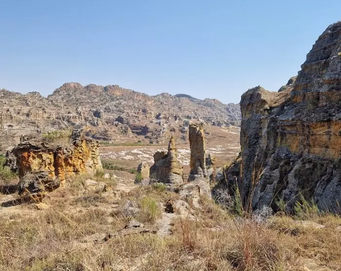 Når savannen går over i sandsteinsklipper, vet du at du har kommet til Isalo.