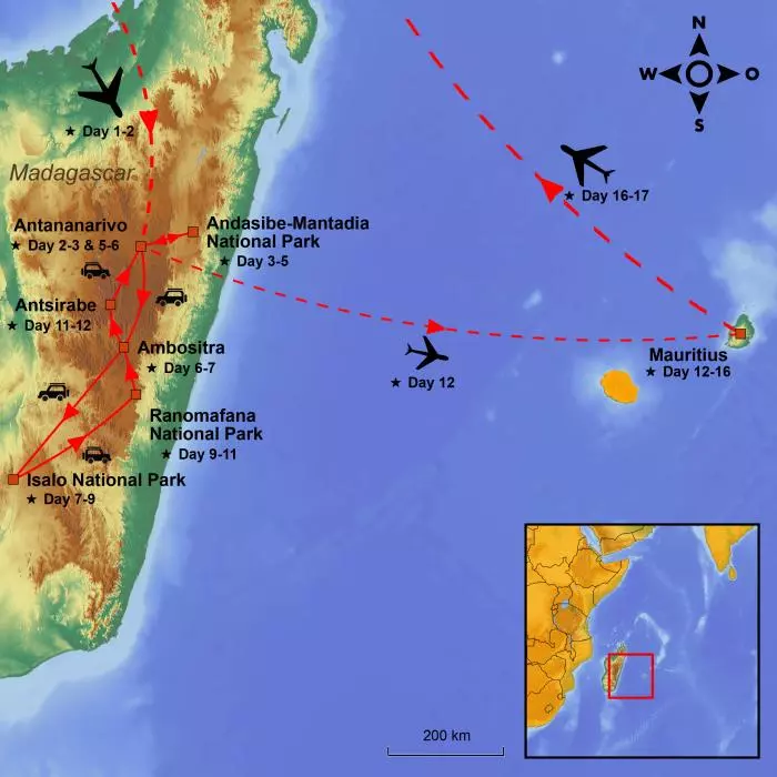 Det er som om India eller Bali møter Afrika – til du kommer til regnskog som minner om cloud forest-skogene i Costa Rica. Deretter føles det som om turen går over slettene i Serengeti, før du ender opp i Nordvest-Australia. Det føles som om alle de andre kontinentene i verden på en eller annen måte har satt sitt preg på Madagaskar – men den store forskjellen er at 90 % av dyrelivet i Madagaskar ikke finnes noe annet sted i verden.