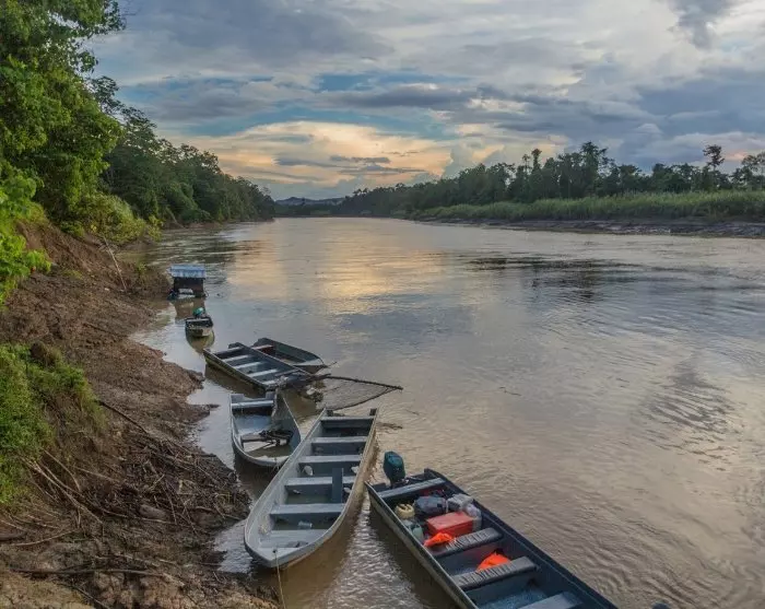 Idet du går ombord på den lille båten kan du lene deg tilbake og nyte regnskogens fredelige atmosfære mens du seiler av gårde i soloppgangen. Landskapet rundt deg er som tatt ut av et eventyr med scener som kan ta pusten fra enhver. Elvens slyngede løp går gjennom både åpen og tett regnskog, hvor brølende aper og syngende fugler skaper et unikt lydbilde.